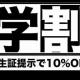【3.4名用】《学割》学生証提示で10%OFF!!