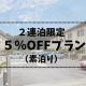 【じゃらんスペシャルウィーク】常設プランと比べて、2連泊以上がお得にご宿泊出来るプラン♪(素泊り)